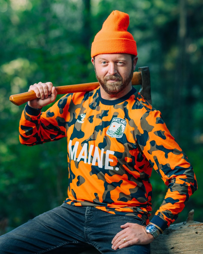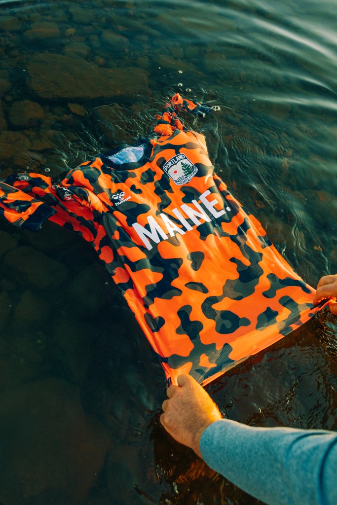 At over 50% blaze orange, the jersey meets common standards for outdoor safety gear. More than a soccer kit—this practical detail puts The Blaze Kit at the intersection of sportswear and workwear. Whether casting a line, sitting beside a campfire, or cheering from the stands at Fitzpatrick Stadium, blaze orange camo is an authentic part of Maine’s landscape.